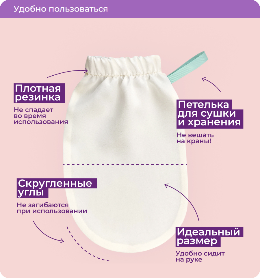 Пилинг-варежка Шелковица мягкая и нежная, благодаря своей уникальной фактуре из шелковых нитей особой крутки заменяет химический пилинг и деликатно, не повреждая и не раздражая, без всяких дополнительных средств, в процессе мягкого массирования отшелушивает отмершую кожу, глубоко очищает ее, выравнивает структуру, улучшает дыхание и цвет, визуально сглаживает целлюлит, помогает бороться с недостатками кожи.